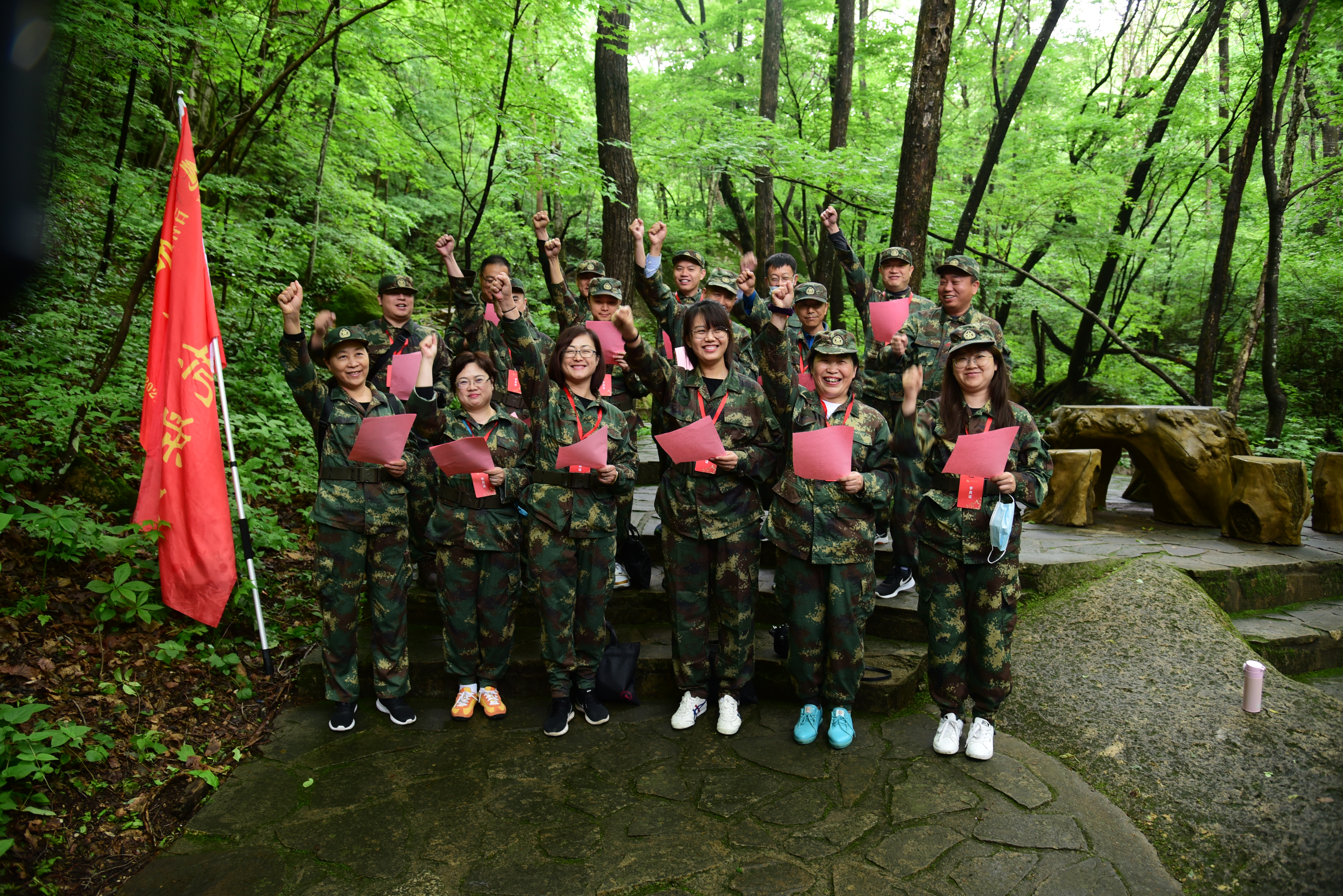 6月5日上午,培训班奔赴集安市五女峰现场教学点开展学习。在行进途中,班主任老师带领学员们学唱了东北抗日联的“露营之歌”。通化市委党校王老师带领学员徒步抗联小路,通过现场教学使学员了解了抗联密营的形式和作用,从碾砣碾盘认识到了东北抗联发展壮大的力量源泉。踏着抗联战士的足迹,学员们亲身体会革命先烈征战露宿的艰辛。最后,班主任组织了抗联诗歌朗诵比赛活动,全体学员精神饱满、引吭高歌。