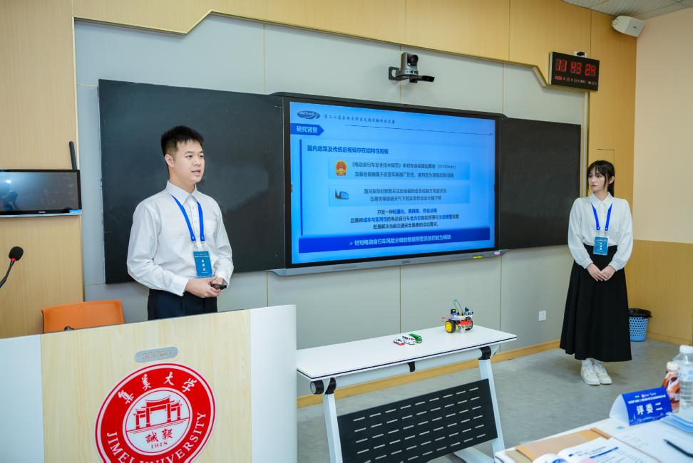 参赛团队成员赵丹晨、孙晨皓、霍磊、何炜明、曹正的参赛作品《“智感护行”——电动自行车动态盲区感知与安全预警装置》提出了一种多场景适用、高精度、符合法规且兼顾成本与实用性的电动自行车动态盲区预警装置。旨在通过动态视野建模、多传感器融合及智能化风险评估以降低事故风险。项目已申请三项国家发明专利,具备规模化推广潜力,可拓展至低速自动驾驶领域,助力“人-车-路”协同智慧交通体系建设。作品受到现场专家评委好评。