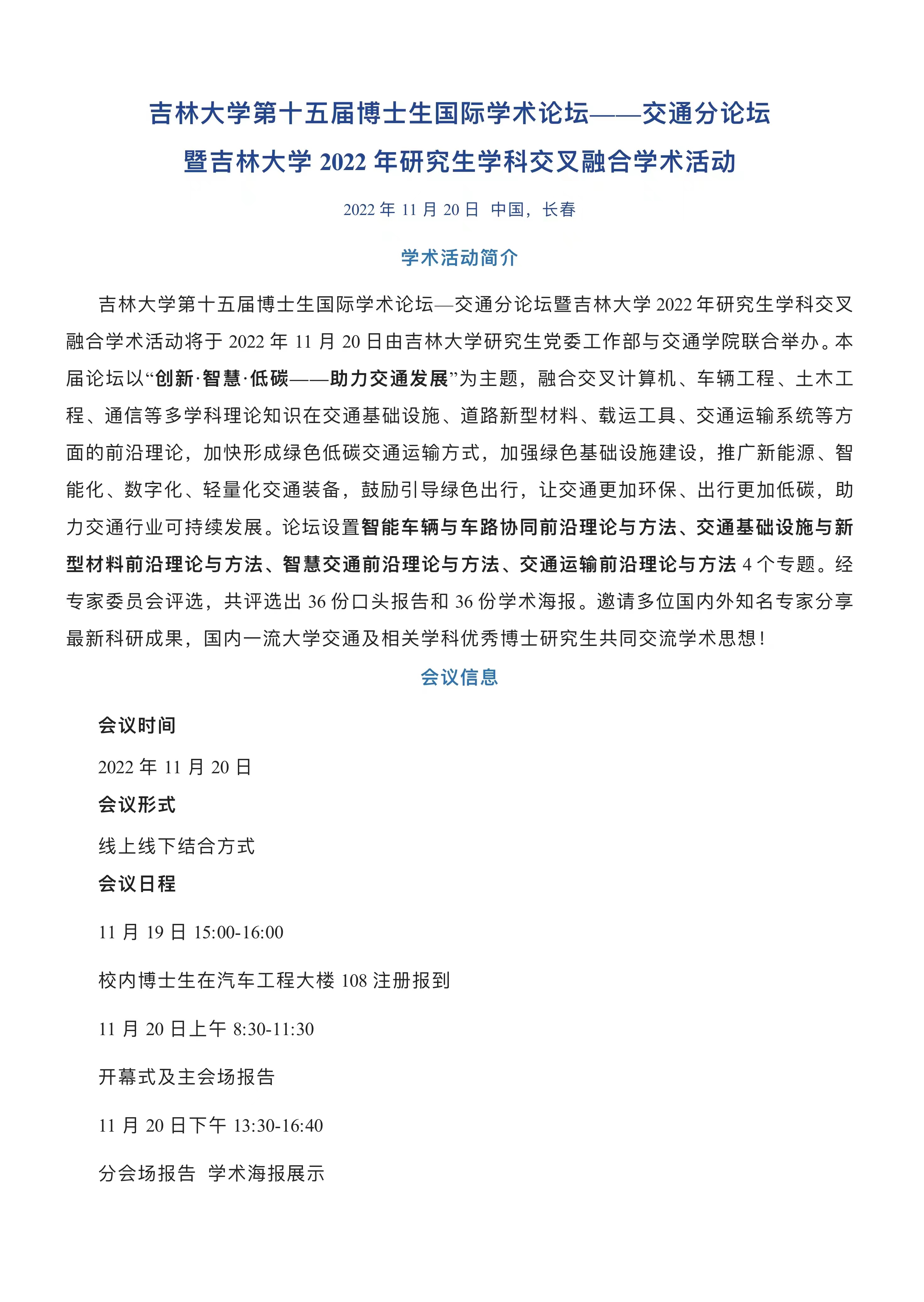 英国be365官网第十五届博士生国际学术论坛——交通分论坛暨2022年研究生学科交叉融合学术活动