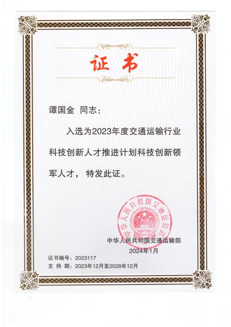 喜报:谭国金教授入选交通运输部科技创新人才推进计划科技创新领军人才